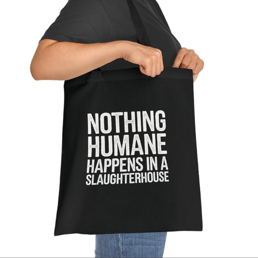 Animal Rights Tote Bag - Nothing Humane Happens In A Slaughterhouse