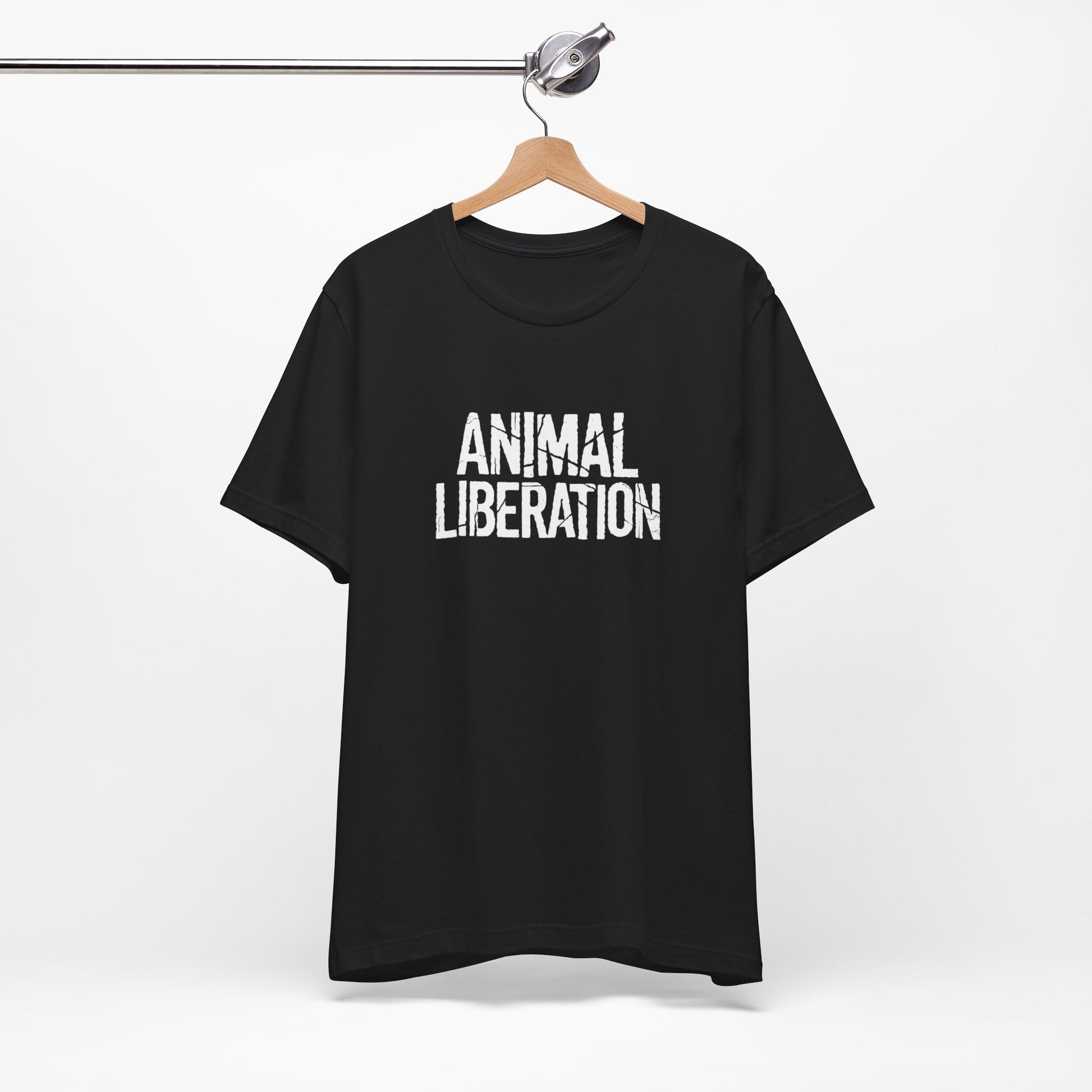 Show your support for animal rights with this bold black t-shirt featuring the simple yet powerful slogan: "Animal Liberation." This design is perfect for anyone passionate about creating a kinder, cruelty-free world and spreading the message of compassion.