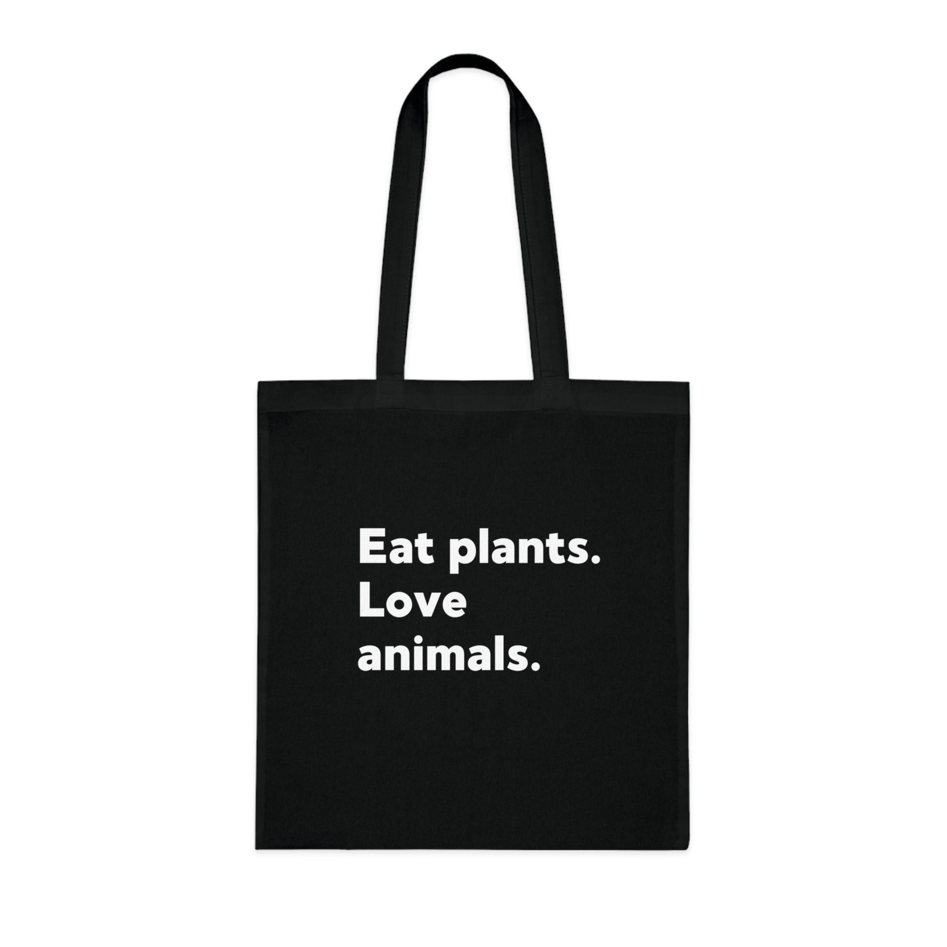 Simple, powerful, and straight to the point. This "Eat Plants. Love Animals." tote bag is a perfect way to express your commitment to a kinder, cruelty-free world.