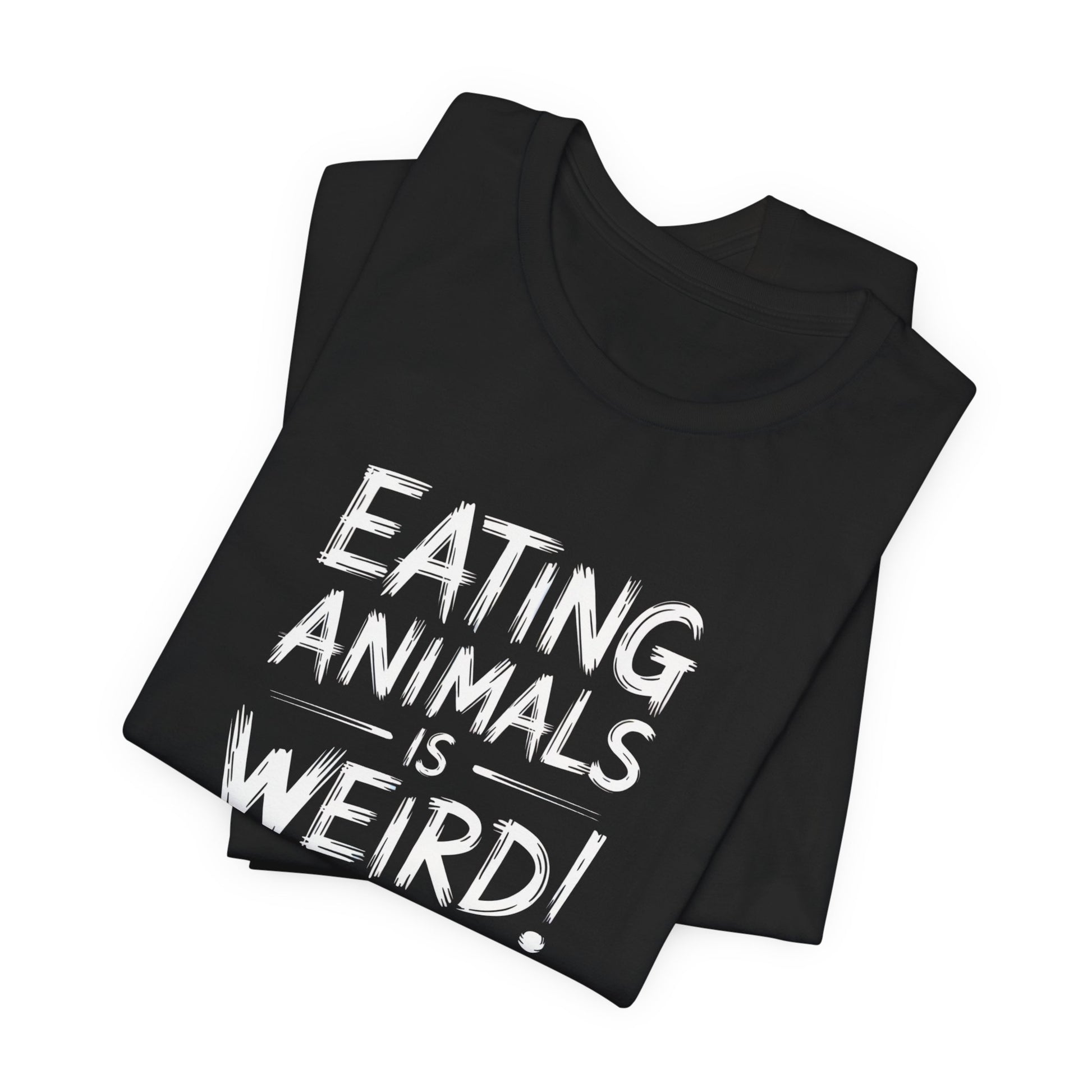 Make a bold statement with this "Eating Animals Is Weird" T-shirt! Designed for vegans, vegetarians, and anyone passionate about animal rights, this tee is a fun and thought-provoking way to challenge the norm and encourage compassionate living.